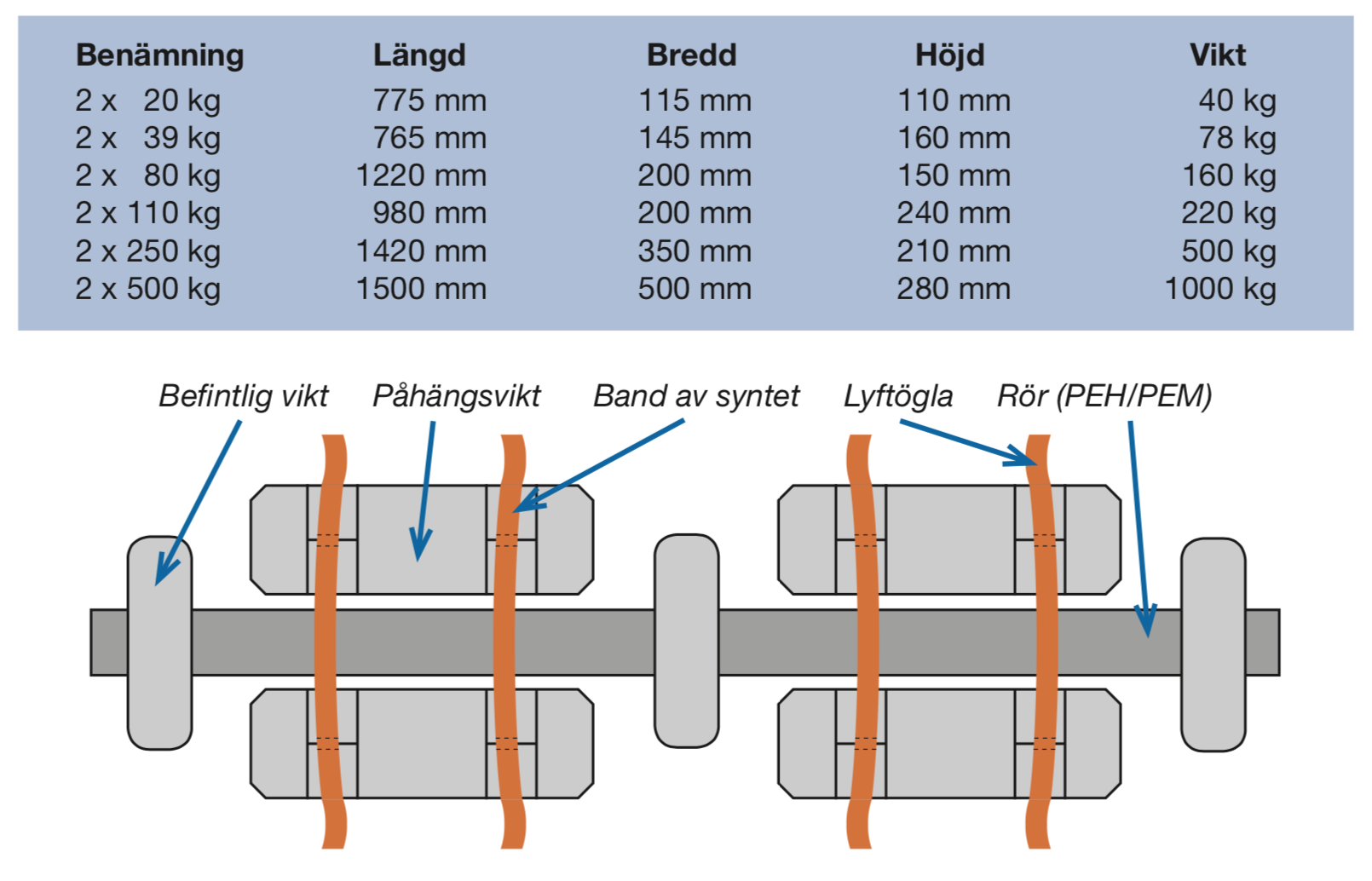Påhängsvikten används när man t ex behöver efterbelasta en sjöledning